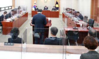 이번 정례회 기간 동안 방청을 부득이 제한하는 한편, 체온측정손소독,방역 철저 등 개인위생수칙을 준수하도록 했으며 회의장 내에서 마스크 착용을 의무화 했다.
