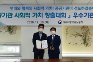【브레이크뉴스 대구】이성현 기자=대구도시공사(사장 이종덕)는 10일 고용노동부가 주관한 ‘공공기관 사회적 가치 창출대회’에서 우수상을 수상했다고 밝혔다.