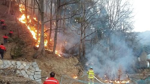 0.165㏊ (about 500 pyeong) of fire or forest was burned at the hillside near Dohaksa Temple at the foot of Palgongsan Mountain in Neungseong-dong, Dong-gu, Daegu.
