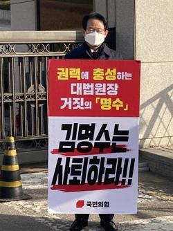 National Assemblyman Ryu Seong-geul (the power of the people, Daegu Dong-gu Gap) held a one-man protest, urging Chief Justice Kim Myung-soo to resign.