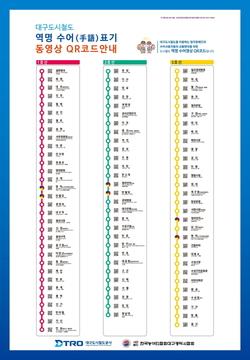 Daegu Metropolitan Rapid Transit Corporation (President Seung-Hwal Hong, hereinafter referred to as the Corporation) attached the “city rail station name sign QR code route map” to the entire station for the first time in the country for the convenience of using urban railroads for sign language users.