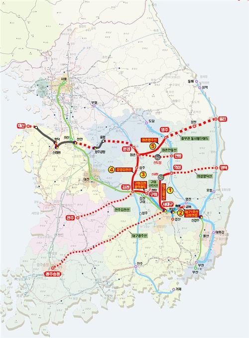 주요 사업 내용들을 살펴보면 먼저 신규반영사업 부문에서는 ①경부선(서대구역)에서 통합신공항을 경유, 중앙선(의성역)을 연결하는 대구경북선(66.8km) ②경산 하양역에서 영천 금호(경마공원)까지 연결하는 대구도시철도 1호선 금호연장(5.0km) ③경부선 경산역에서 구미역까지 구축중인 대구권 광역철도망의 구미~김천 광역철도 연장(22.9km) 사업 등이 대표적이다. 또, 단절구간인 문경~김천 내륙철도와 중부권 동서횡단철도의 기반이 되는 점촌~영주 전철화(56.0km)도 반영됐다.