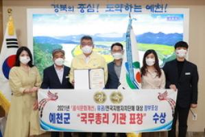 경북 예천군이 식품의약품안전처에서 시행한 '음식문화 개선사업' 유공 기관으로 선정돼 국무총리 기관 표창장과 수치(綬幟.끈으로 된 깃발)를 수여받았다.