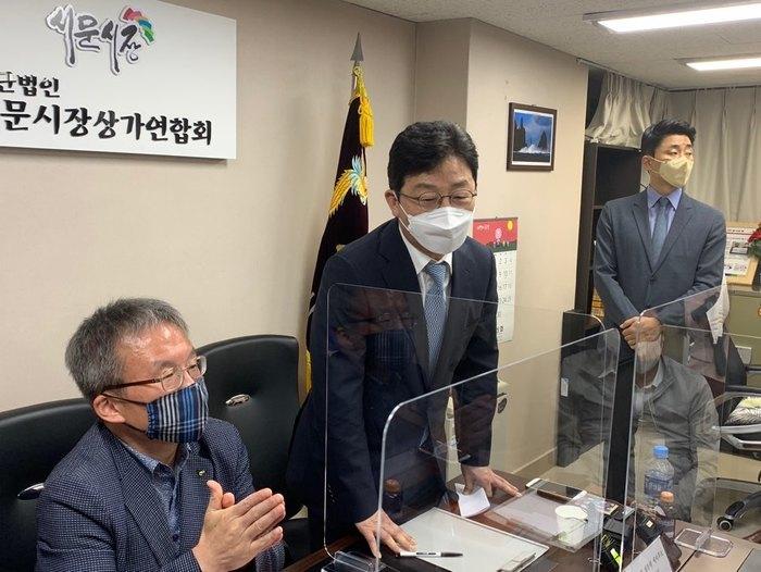 Candidate Seung-min Yoo, who went on a livelihood tour to the Seomun Mayor of Daegu on the same day, spoke with reporters after a meeting with a merchant and spoke about the progress of Candidate Hong Jun-pyo.