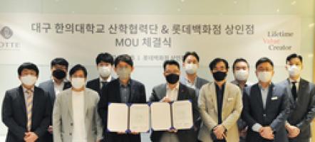 대구한의대 산학협력단과 롯데백화점 상인점은 코로나19로 힘든 지역기업 제품의 판촉 및 마케팅을 통해 지역경제 활성화 및 상호 발전을 도모하기 위한 업무협약을 체결했다.