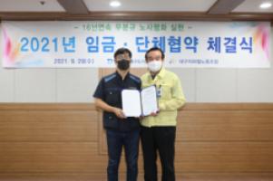 Daegu Metropolitan Rapid Transit Corporation announced that it had signed a wage agreement for 2021 with the Daegu Subway Union (Chairperson Yoon Yoon-ryun).