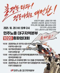 The Daegu Regional Headquarters of the Federation of Trade Unions (KCTU) announced on the 19th that they would go on a general strike to break the inequality system in Korean society and realize an equal society through the 2021 regular delegates meeting on the 20th.
