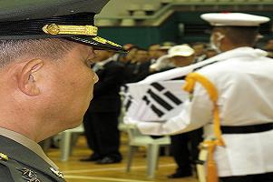 ▲ 유낙준 해병대1사단장이 떠나는 유해를 바라보며 눈믈을 흘리고 있다.     © dkbreaknews.com