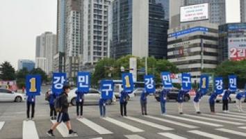On the 19th, when the official election campaign began, Candidate Kang Min-gu conducted an election campaign by lining up at a crosswalk with activists at a blue light at Beomeo Intersection to greet citizens.