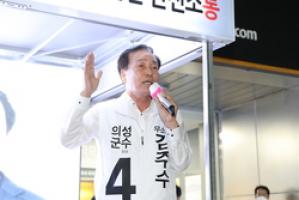 특히, 그는 “어떤 후보는 공항이 군위에 가도, 의성에 와도 상관없다고 하는데 이 말은 우리 군민들께서 그동안 공항 유치를 위해 얼마나 헌신을 해왔는지를 모르고 하는 소리”라며 “90프로가 넘는 우리 주민들께서 공항 유치를 희망하셨다. 주민들이 하신 그 위대한 일을 부정하자는 것이냐. 그런 분에게 어찌 의성군정을 맡길 수 있겠느냐. 제가 마무리 짓겠다. 6월 1일 투표장에 가시면 반드시 저 김주수, 4번 김주수를 찍어달라”고 호소했다.