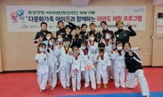 Daegu Suseong-gu Office (Chairman Kim Dae-kwon) announced on the 12th that the women's taekwondo team had recently donated their Taekwondo talents to children of multicultural families at the training ground located in Suseong-gumin Stadium.