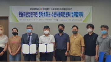 The agreement was held in the presence of Widuk University LINC 3.0 Project Team Leader (Lee Seong-hwan), Hwandonghae Industry Research Institute Yeongdeok Lohas Fisheries Food Support Center Director (Kim Myung-wook), and related officials.