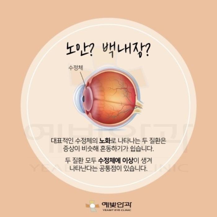 백내장은 노안과 다르다. 백내장은 질환이고, 근거리가 잘 안 보이는 노안(조절력 저하)은 나이가 들면서 발생하는 정상적인 생리현상이다. 노안 증상을 개선하겠다고 백내장수술을 결정하는 것은 안과의나 환자 모두 굉장히 신중하고 조심스러워야 한다.