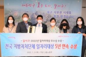 <구글 번역으로 번역한 영문 기사의 전문 입니다. 번역에 오류가 있을 수 있음을 밝힙니다.> Dalseo-gu, Daegu (Chairman Lee Tae-hoon) announced that it had received the Excellence Award in the job disclosure system at the ‘2022 National Local Government Job Awards’ hosted by the Ministry of Employment and Labor.