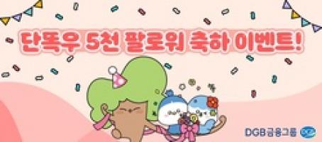 【브레이크뉴스 대구】박은정 기자=DGB금융그룹(회장 김태오)은 그룹 공식 인스타그램 ‘선넘는 단똑우’ 팔로워 5,000명 달성 축하 이벤트를 진행한다고 18일 밝혔다