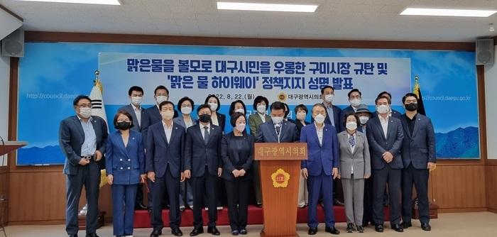 대구시의회는 22일 오전 ‘맑은 물 하이웨이 ’정책을 지지하는 성명서를 통해 김장호 구미시장을 강력 규탄했다.