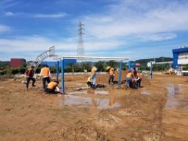 On this day, the head of the Chilgok School Operation Committee and the parents' association executives participated in the flood restoration work to intensively clean up the rubbish swept down from the playground, playground, and drainage ditches.