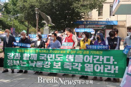 NGOs such as Nakdong River Daegu Gyeongbuk Network held a press conference in front of Daegu City Hall at 11 am on the 21st and said, “The fact that harmful cyanobacteria (green algae, cyanobacteria) similar in size to fine dust spread into the air through aerosols (liquid particulates). This was revealed," he pointed out, "the result of neglecting green algae latte for 10 years."