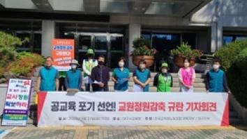 <구글 번역으로 번역한 영문 기사의 전문 입니다. 번역에 오류가 있을 수 있음을 밝힙니다.> The Daegu and Gyeongbuk branch of the National Teachers and Staff Union held a press conference in front of the Daegu Metropolitan Office of Education on the 27th and condemned the government's reduction in the number of teachers.