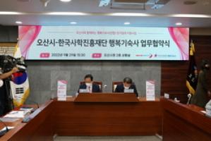 Happy Dormitory Co., Ltd. (CEO Chan-gyu Kim, hereinafter referred to as ‘Happy Dormitory’) of the Korea Foundation for the Promotion of History has signed an agreement to support the local government quota system for Happy Dormitories with Osan-si, Gyeonggi-do.