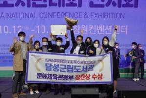 The awards ceremony was held at the opening ceremony of the 59th National Library Contest held at the Changwon Convention Center on the 12th, and the Dalseong-gun Library received the Minister of Culture, Sports and Tourism Award in the public library field, and was awarded the excellent library certification mark, certificate, and reward.