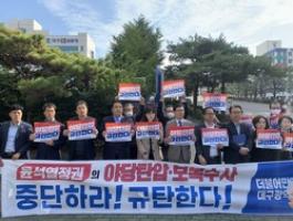 The Daegu City Party of the Democratic Party of Korea held a press conference condemning the search and seizure of the central party by the prosecution.