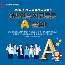 【브레이크뉴스 대구】진예솔 기자=한국사학진흥재단(이사장 홍덕률, 이하 ‘KASFO’)이 교육부 소관 공공기관 경영평가 결과 3년 연속 최고 등급을 달성했다고 4일 밝혔다.