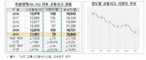 This is the smallest number since the start of traffic accident statistics, and it is reduced by half compared to 158 people in 2016, when Daegu City implemented special measures to reduce traffic accidents by 30%.