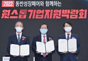 【브레이크뉴스 대구】박은정 기자= 대구시와 동반성장위원회, 한국산업단지공단은 30일 ‘2022 원스톱기업지원박람회’ 개막식에서 지역 동반성장 강화와 원스톱 기업지원을 위한 업무협약을 체결했다고 1일 밝혔다.