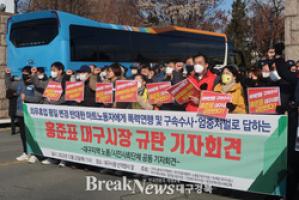 They condemned Mayor Hong Joon-pyo, saying, “Even now, Daegu Mayor Hong Joon-pyo should drop the accusations against the mart workers and listen to their voices.”