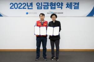 최연혜 가스공사 사장과 신홍범 공공운수노조 가스공사지부장은 7차례의 실무교섭 및 2차례 본교섭 끝에 정부지침 상 총 인건비 인상률 내에서 2022년도 임금인상을 하기로 최종 합의했다.