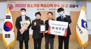 【브레이크뉴스 성주】이성현 기자=성주군은 올해 경상북도가 실시한 중소기업 육성시책 시·군 평가에서 최우수 기관으로 선정됐다고 29일 밝혔다.