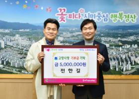 【브레이크뉴스 대구】박은정 기자=경산시(시장 조현일)는 경산시 홍보대사로 활동하고 있는 전한길 한국사 강사가 500만 원을 기부해 고향사랑기부제의 고액기부자 1호라고 5일 밝혔다.