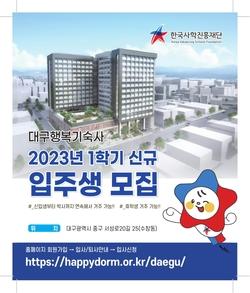 15일, KASFO는 대구 행복기숙사 2023년도 1학기 마지막 정규 입사생을 모집한다고 밝히며 이번달 21일까지 입사신청을 받는다고 밝혔다.