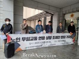Daegu Citizens' Coalition for Economic Justice, Daegu People's Solidarity for Participatory Participation, and Welfare Citizens' Alliance held a press conference in front of the Daegu City Council at 9:30 am on the 23rd and called for the abolition of the 'Daegu City Elderly Free Transportation Support Ordinance Amendment'.