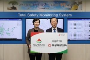 대성에너지는 지난 2021년 노사협의회와 함께 독거노인 등에 8천만원, 지난해 보호종료 청소년과 에너지 취약계층 복지 사업에 1억 5천만원의 성금을 기부하는 등 지속적인 기부로 열두번째 대구 나눔 명문기업에 이름을 올렸다.