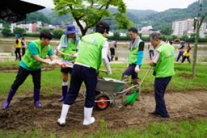 On the 26th, about 40 employees, including Head of Business Management Headquarters Kim Gu-won and Labor Union Chairman Yoo Seong-yeop, participated in the recovery activity, helping to quickly recover the damaged area by removing various floating matters, clearing the soil, collecting waste plastic, and restoring facilities.