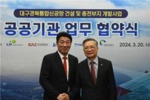 Starting with the TK New Airport Construction Public Institution Business Agreement Signing Ceremony held at Daegu City Hall's Sangyeok Building at 10 am on this day, the construction of the integrated new airport and the development of the previous site are expected to get back on track.