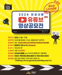 김주수 의성군수는“2023년에 이어 두 번째로 2024 의성사랑 유튜브 공모전을 개최하게 되어 기쁘다”라며 “의성군의 다양한 행사, 축제, 관광, 문화 요소들을 담은 많은 영상들이 접수되어 의성의 색다른 매력을 확인하는 기회가 될 수 있기를 기대한다”라고 말했다.