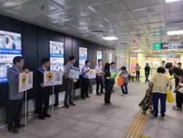 About 60 people, including management and employees of the corporation, the Occupational Safety and Health Agency, and the Elevator Safety Corporation, participated in this campaign, which was held on the 23rd at the transfer passageway of Cheongna Hill Station and the platforms for lines 2 and 3 for citizens using the urban railway.