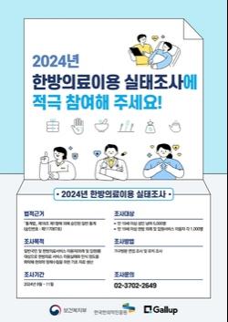 Korea Institute of Oriental Medicine (Acting Director Shin Je-soo) will conduct the ‘2024 Survey on the Status of Traditional Korean Medicine Use’ for 3 months starting September 5th in cooperation with Korea Gallup Research Institute.