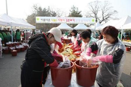 경주시 새마을회(회장 김병태)에서는 26일 오전 10시 황성공원 시민운동장앞 광장에서 경주시 새마을부녀회(회장 박삼희), 경주시새마을협의회(회장 임영식) 읍면동 지도자와 다문화가정 주부 등 600여명이 참석한 가운데 불우이웃 전달 김장 1만포기 담그기 행사를 가졌다. 이 날 열린 행사에는 백상승 경주시장을 비롯한 최병준 시의회의장 이윤주 정수성국회의원 부인, 도․시의원 들이 함께 참석하여 새마을지도자들의 노고를 격려하고 김장 담그기 행사에 동참했다. 또한 23개 읍면동에 거주하고 있는 다문화가정 주부들도 부녀회원들을 따라나와 김장 담그기를 직접 몸으로 실습하며 한국 음식문화에 대해 배우고 우의를 돈독히 다지는 뜻깊은 시간을 가졌다. 이날 사랑의 김장김치 1만포기는 경주시새마을회가 23개 읍면동으로부터 사전에 신청 받은 장애인, 독거노인, 홀몸노인 등 1천 여 명과 9개 사회복지시설에 23개 읍면동 새마을회를 통하여 직접 전달하게 된다. 이와 함께 읍면동 새마을회에서는 쌀과 연탄나누기 행사도 병행 실시하여 어려운 이웃들이 추운 겨울을 나는데 따뜻한 정을 느끼게 할 것으로 기대하고 있다. <저작권자 ⓒ 브레이크뉴스 대구경북 무단전재 및 재배포 금지>