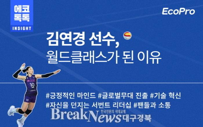 EcoPro, a secondary battery materials specialist, announced on the 19th that it analyzed the 20-year volleyball career of recently retired ‘Queen of Volleyball’ Kim Yeon-kyung through its internal communication channel ‘EcoTalkTalk’ and shared the core values necessary for organizational innovation and growth with all employees.