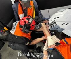 B had severe swelling and deformity on his left instep, and the rescue team administered emergency measures such as fixing a splint and bandaging him at the scene before transporting him to Pohang Songdo Fisheries Cooperative Pier and handing him over to the 119 ambulance that was on standby.