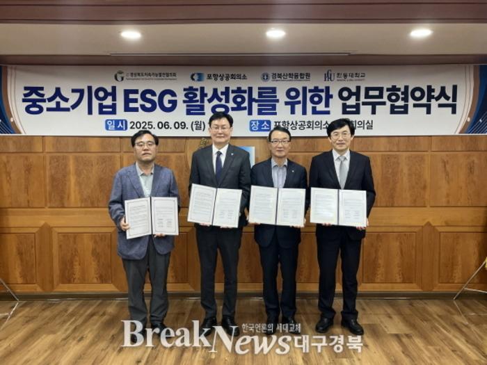 나주영 포항상공회의소 회장은 “이번 협약은 기업들이 ESG 경영을 보다 쉽게 이해하고 실천할 수 있도록 지원하기 위한 출발점”이라며 “지역 기업의 지속가능한 성장과 경쟁력 강화를 위해 힘을 모아가겠다”고 말했다.