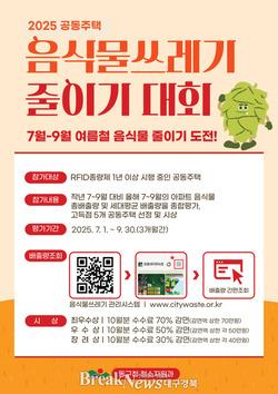 동구는 오는 7월 1일부터 9월 30일까지 ‘2025년 공동주택 음식물 쓰레기 줄이기 경진대회’를 개최한다.