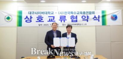 Daegu Cyber University (President Lee Keun-yong) announced on the 30th that it signed a memorandum of understanding (MOU) with the Korea Federation of Special Education Associations (Chairman Cho Hyun-kwan) in the C.I.R. conference room of the university's main building to strengthen expertise in special education and establish a sustainable educational cooperation system.
