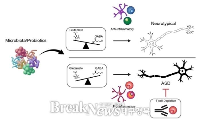 연구팀은 장내 미생물이 뇌 속 면역세포의 염증 반응을 촉진하고 특정 T세포가 자폐증 발현에 핵심 역할을 한다는 사실도 규명했다. 실제로 이 면역 경로를 차단했을 때 신경 염증이 줄고 행동 이상이 완화됐다. 또한 장내 미생물이 신경전달물질인 글루타메이트(glutamate)와 가바(GABA)의 균형을 깨뜨려 뇌 기능에 영향을 미친다는 점도 확인했다.