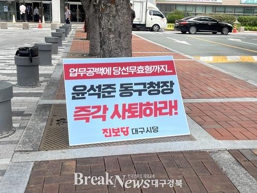 【브레이크뉴스 대구】진예솔 기자=당선무효형 선고에도 불구하고 구청장직을 유지하려는 윤석준 대구 동구청장을 향한 주민들의 분노가 집회로 표출된다.