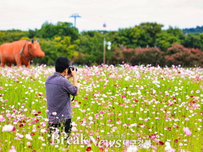 왕피천공원이 조성한 코스모스 밭은 발길은 멈추고 사진을 찍고 싶은 포토존으로 손색이 없다.